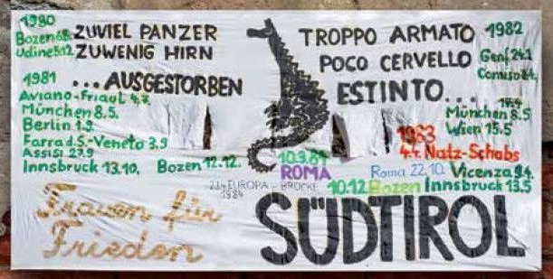 Irmtraud hatte wohl eine Vorahnung, als sie im März 2019 sagte: „Man muass eppes tian, bevor wieder der Kriag kimp“. Irmtraud Mair, inzwischen 84 Jahre alt, war der Kopf der „Frauen für den Frieden“ in Südtirol in den 1980er Jahren. Die immer noch kämpferische Pazifistin hat ein sehr bewegtes Leben hinter sich und lebt seit