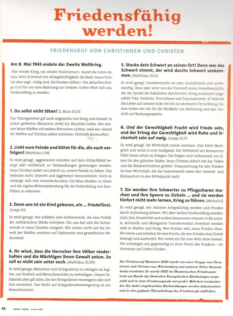 Von – FriedenstaubeVeröffentlicht am 24.09.202524.09.2025Veröffentlicht unter AllgemeinFriedensfähig werden – Friedensruf von Christinnen und Christen –aus Publik-Forum August 2025